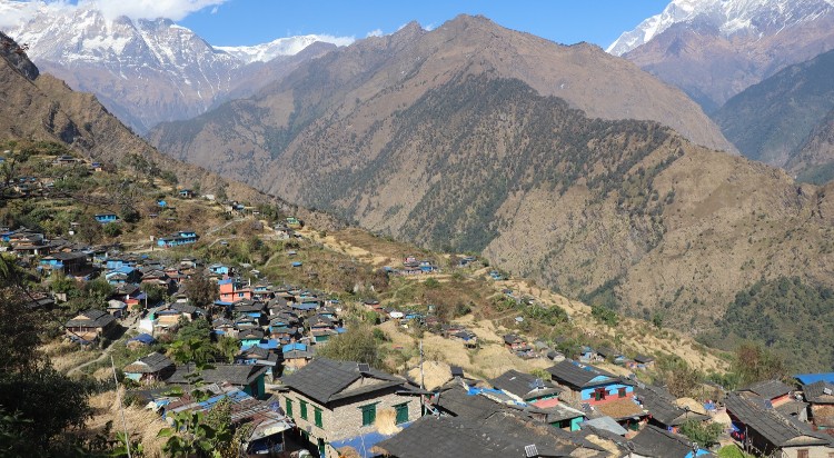 म्याग्दी, २६ मङ्सिर । पृष्ठभूमिमा गुर्जा र धवलागिरि हिमाल । भिरालो पाखामा गुजमुज्ज ढुङ्गे घरहरू । ग्रामीण जीवनशैली । हिउँदमा बेँसी र बर्खामा लेक जाने पशुका घुम्ती गोठहरू । चिटिक्क परेका गल्लीहरू । कर्नासेमा मकैको झोता झुण्ड्याएका घरहरू ।