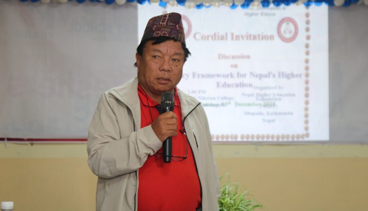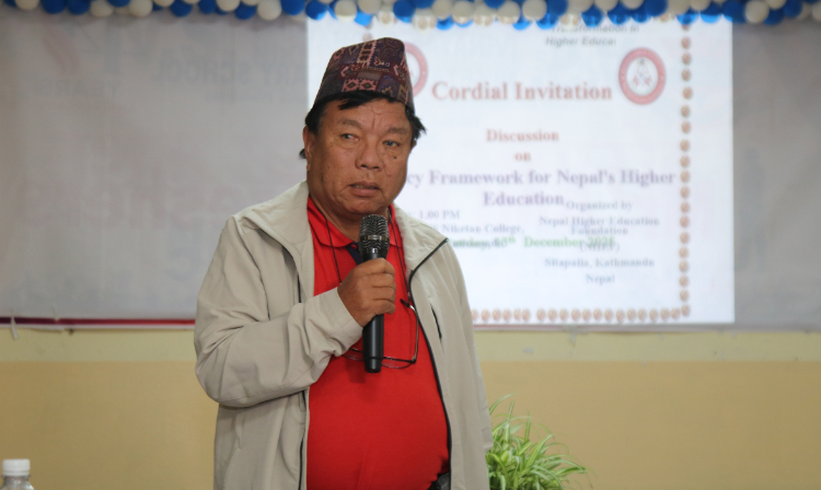 नेपाल उच्चशिक्षा प्रतिष्ठानका अध्यक्ष प्राध्यापक डा.तीर्थराज खनियाले कार्यक्रमको उद्देश्य र सान्दर्भिकतामाथि प्रकाश पार्दै नेपालको उच्चशिक्षा प्रणालीलाई समयानुकूल सुधार गर्न नीतिगत स्पष्टता, संस्थागत स्वायत्तता र उत्तरदायी नेतृत्व अपरिहार्य रहेको बताउनुभयो ।