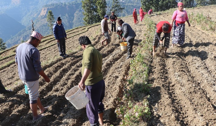 जलजला–बाँसबोट कृषक समूहका सचिव कमलनयन आचार्यले ८० रोपनी खेत भाडामा लिएर १६ जनाले सामूहिक बीउका लागि आलुखेती सुरु गरिएको जानकारी दिनुभयो । किसानले व्यक्तिगत रूपमा ५० बोरा र समूहले ११५ बोरा आलु रोपेका उहाँले बताउनुभयो ।
