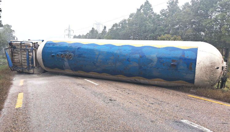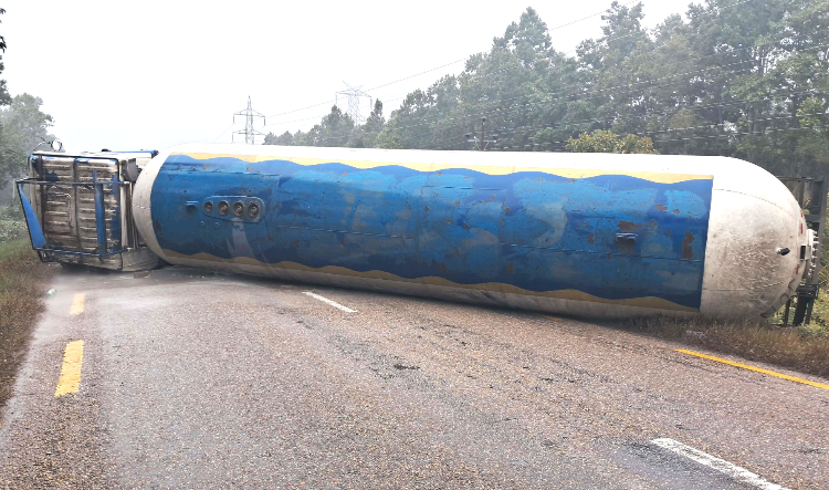 भारतको रक्सौलबाट एलपी ग्यास बोकेर धनुषाको महेन्द्रनगरतर्फ जाँदै गरेको युपी १७ एटी २११४ नम्बरको ट्याङ्कर आज बिहान दुर्घटना भएको हो । अवरुद्ध राजमार्ग बिहानैदेखि खुलाउने प्रयास भए पनि प्राविधिक कारणले खुलाउन नसकिएको इलाका प्रहरी कार्यालय चन्द्रनिगाहपुरकी प्रहरी नायब उपरीक्षक रुपा लाबुङले जानकारी दिनुभयो ।