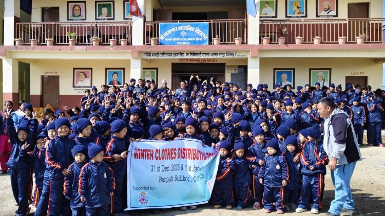 गोरखा, २० पुस । गोरखाको बारपाक सुलिकोट गाउँपालिकाभित्रका ७०६ बालबालिकालाई न्यानो कपडा वितरण गरिएको छ । विभिन्न सात विद्यालयमा अध्ययनरत बालबालिकालाई चिसोबाट जोगाउन जनालाई न्यानो कपडा वितरण गरिएको गाउँपालिकाका अध्यक्ष विष्णुप्रसाद भट्टले जानकारी दिनुभयो ।