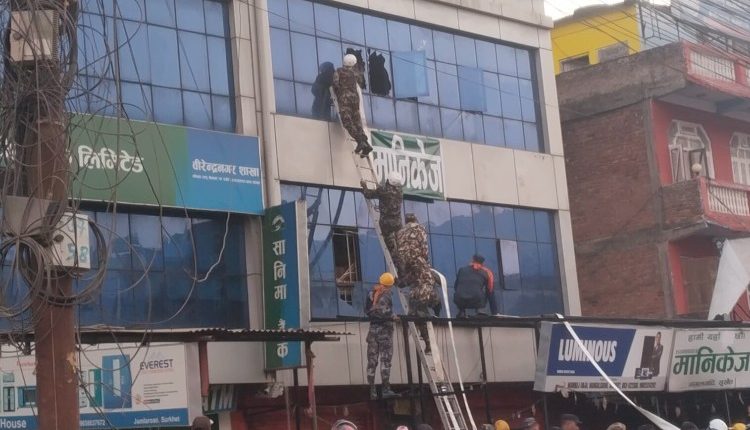 नेपाली सेनाका उपसेनानी मनोज कुँवर र नेपाल प्रहरीका प्रहरी निरीक्षक राजन भट्टराईको टोलीले भवनको भित्ता फोडेर चौथो तलाबाट बेहोस अवस्थामा रहेकी वृद्धाको उद्धार गरेको राजदल गण विमानस्थल सुर्खेतका प्रमुख सेनानी भद्रबहादुर सिंहले जानकारी दिनुभयो ।