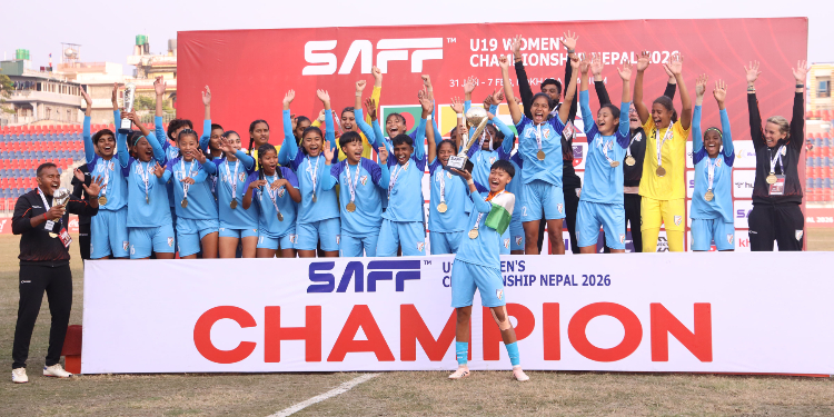 कास्की, २४ माघ । पोखरामा सञ्चालन भइरहेको १९ वर्षमुनिको साफ महिला च्याम्पियनसिप फुटबल प्रतियोगिताको उपाधि भारतले जितेको छ । पोखरास्थित अन्तर्राष्ट्रिय फुटबल रङ्गशालामा आज सम्पन्न फाइनल खेलमा साविक विजेता बङ्गलादेशमाथि ४–० को फराकिलो अन्तरको जित निकाल्दै भारत च्याम्पियन बनेको हो ।
