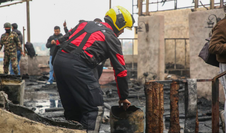 आज दिउँसो ३ः४५ बजेतिर विद्युत् सर्ट हुँदा भएको आगलागी ललितपुर महानगरको प्रहरीले बारुणयन्त्र प्रयोग गरी नियन्त्रणमा लिएको ललितपुर महानगरका प्रहरी प्रमुख सीताराम हाछेथुले जानकारी दिनुभयो । “हामीले तत्कालै पुगेर दाउरा थकालीमा भएको आगलागी नियन्त्रणमा लिएका छौँ, आगलागीबाट भएको क्षतिको विवरण आउन बाँकी छ”, उहाँले भन्नुभयो ।