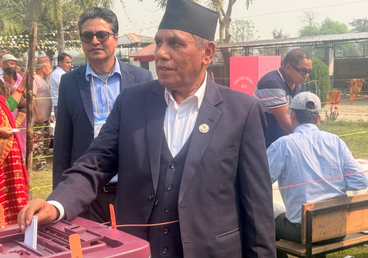 चितवन, २१ फागुन । राष्ट्रियसभा अध्यक्ष नारायण दाहालले प्रतिनिधिसभा निर्वाचनअन्तर्गत भरतपुर महानगरपालिका वडा नं। १४ शान्तिपुर स्थित नेपाल पुुलिस स्कूल मतदान केन्द्रबाट मतदान गर्नुभएको छ ।