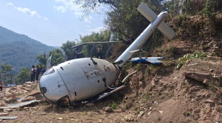 खोटाङ, ४ चैत । केपिलासगढी गाउँपालिका–२ खार्तम्छास्थित बालाबेँसीमा आज एयर डाइनेष्टी कम्पनीको हेलिकोप्टर दुर्घटना हुँदा छ जना घाइते भएका छन् । काठमाडौँबाट पाँच यात्रु लिएर आज दिउँसो १२ बजेर २ मिनेट जाँदा खार्तम्छास्थित बालाबेँसी आइपुगेको हेलीकोप्टर अवतरणको क्रममा भित्तामा ठोक्किएको थियो ।