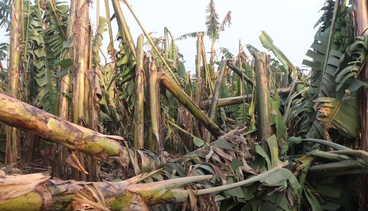 रत्ननगर नगरपालिका–११ निवासी कृषक बाबुराम भट्टले लगाएको छ बिघा केरामा क्षति पुगेको छ । जग्गा भाडामा लिएर केराखेती गर्दै आउनुभएका भट्ट चैत सुरु भएसँगै हुरीका कारण क्षति बेहोर्नु परेको बताउनुहुन्छ । आफूले लगाएको केरा उत्पादन लिने समयमा हुरीले ढलाएपछि अहिले केरा बगान सरसफाइका लागि मजदुर लगाएर काम गर्नुपर्ने अवस्थामा पुगेको उहाँको भनाइ छ । उहाँले लगाएको केरा अधिकांश ढलेको अवस्थामा पुगेको छ ।