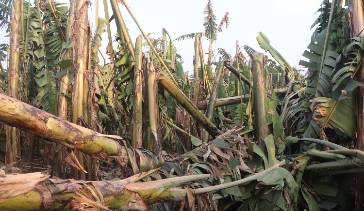 उहाँले भन्नुभयो, “एउटा फार्ममा ८८ प्रतिशत क्षति भएको पायौँ । सबैको अवस्था त्यस्तो छैन ।” हुरीले मालभोग केरामा ठुलो क्षति पुगेको छ । मालभोग केरामा ७८ प्रतिशत र जिनाइन केरामा २२ प्रतिशत क्षति भएको उहाँले जानकारी दिनुभयो । समग्रमा ४३ दशमलव ३५ प्रतिशत केरामा क्षति भएको उहाँले बताउनुभयो । कार्यालयमा एक हजार ८०० हेक्टरमा लगाइएको केरा सूचीकृत गरिएको छ ।