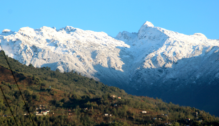फुङ्लिङ, ८ चैत । दुईदिन वर्षाभएपछि मौसम सफा हुँदा ताप्लेजुङ जिल्लाको डाँडाकाँडा चाँदीझैँ सेताम्मे देखिन थालेका छन् ।
