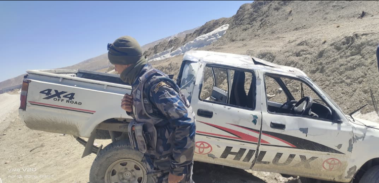 घाइते चालक सुब्बालाई सशस्त्र प्रहरीद्वारा कोरला नाकाबाट उद्धार गरी जोमसोम अस्पतालतर्फ ल्याउँदै गरेको सशस्त्र प्रहरी नायब उपरीक्षक गिरीले जानकारी दिनुभयो ।