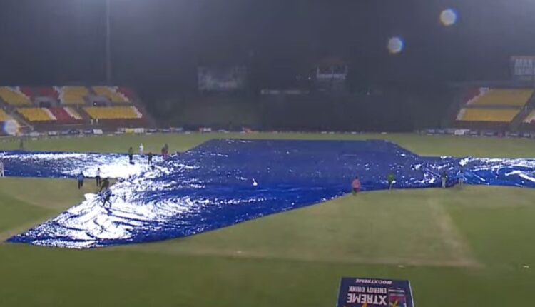 कीर्तिपुरस्थित त्रिवि मैदानमा भइरहेको खेल वर्षाका कारण प्रभावित भएको हो । टस जितेर पहिला ब्याटिङ गरेको नेपालले १८.५ ओभरमा ८ विकेट गुमाएर १२२ रन बनाएपछि वर्षा सुरू भएको हो ।