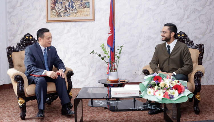 सिंहदरबारस्थित मन्त्रालयमा सोमबार भएको भेटमा नेपालको शिक्षा, विज्ञान तथा प्रविधि र खेलकुदसहितको क्षेत्रमा चीन सरकारको सहयोग र सहकार्यबारे कुराकानी भएको थियो ।